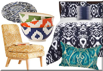 Bowls, Beds, Chairs and Pillows. Ikat is everywhere!