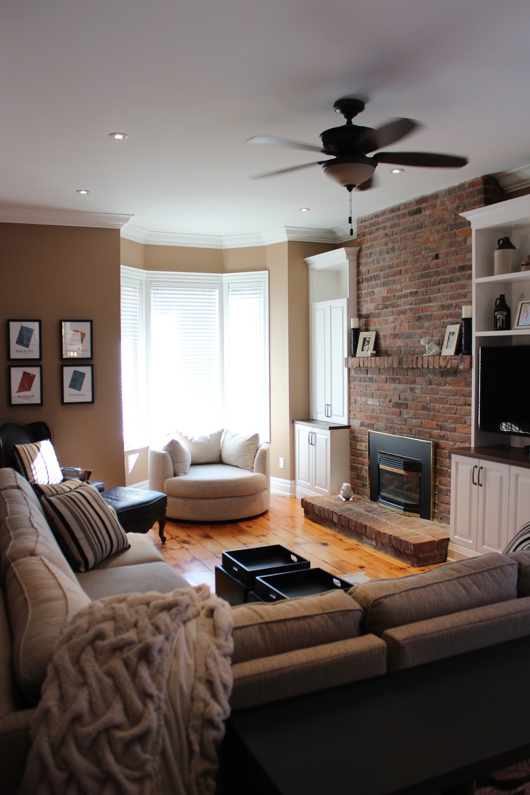My client expressed that their sofa was too small, particularly when they entertained. They wanted something that was cozy, spacious and most of all durable. They have a French Bulldog, a four year old and a new born, which means easy clean ability was a must have. We decided on some practical and comfortable furniture pieces for the living space. The next query was the issue of storage. They felt over run with electronics, toys and the fact that there was no places for things to go. We decided to make use of the vertical space in the room with some custom made built ins to create a home for all of the books, toys and smaller items that need to just go away. These built ins were to hug the existing brick fireplace, as it was a feature the homeowners loved about this room.