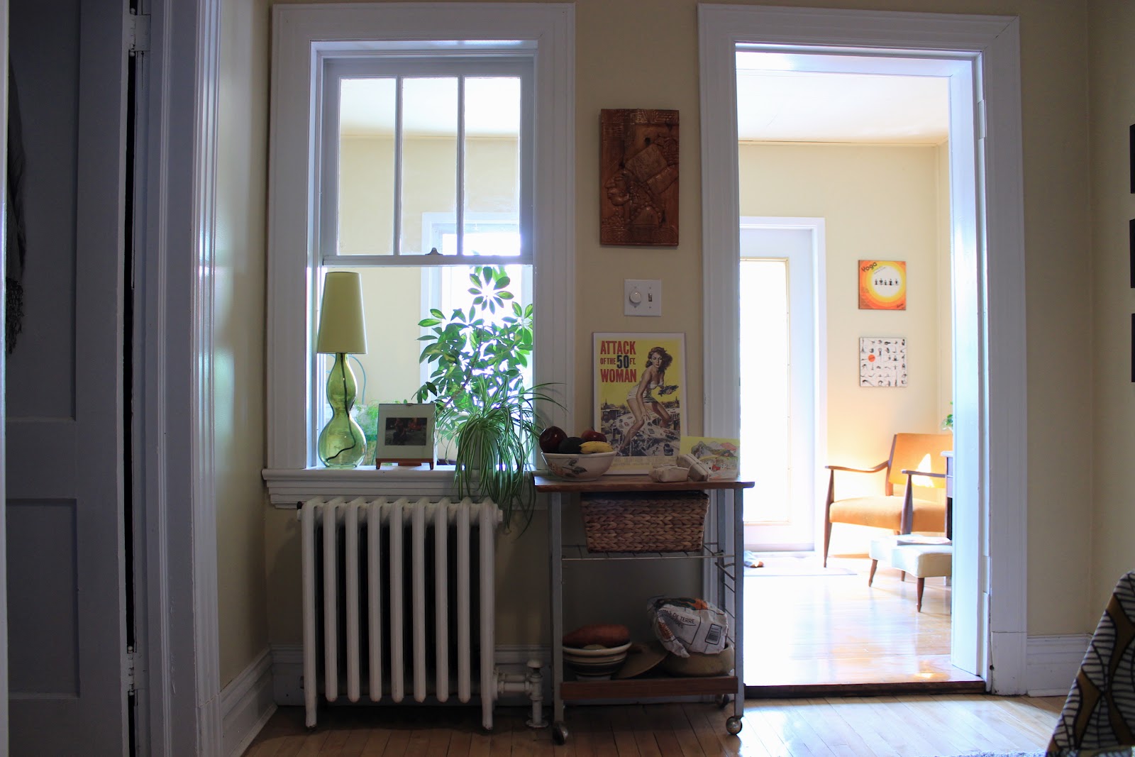 I have a best friend who has been into vintage long before it was trendy and cool…like I am talking 20 years ago, she saw the beautiful things vintage offered and embraced it! Jessica, who resides in Sudbury, Ontario, where she and hubby Mark have created a fabulous little abode and lifestyle. Not only do they have a funky, retro inspired apartment, they also have seriously fun careers! They own a record store, guitar store, sound studio to start. Seven years deep, Mark still continues to write, sing, play and tour with his band, Ox. Jess is pregnant, writes a blog called Cupcakes and Kale, all the while is starting up a small vegan friendly bakery, Oh My Bakeshop (opening the fall). Not your everyday work load, right?  Between their interests, personalities and love of anything with a story, Mark and Jess’ decor inspired me when I was visiting last week. It is so effortless and speaks only of them.
