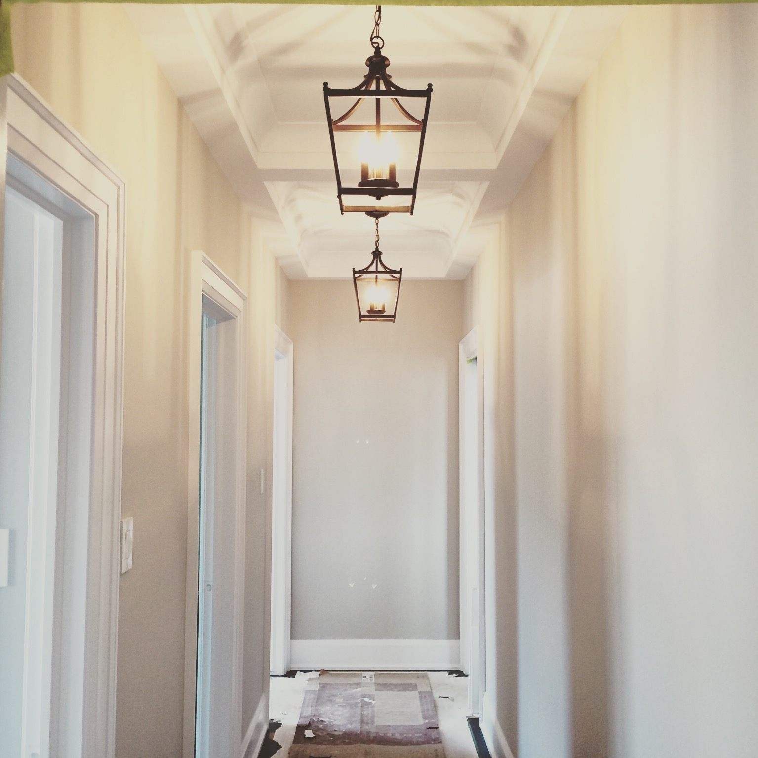 | A photo captured by my client. This was just days before they moved in. I love the repetition of the lights. Pots lights are not always the answer 🙂 |