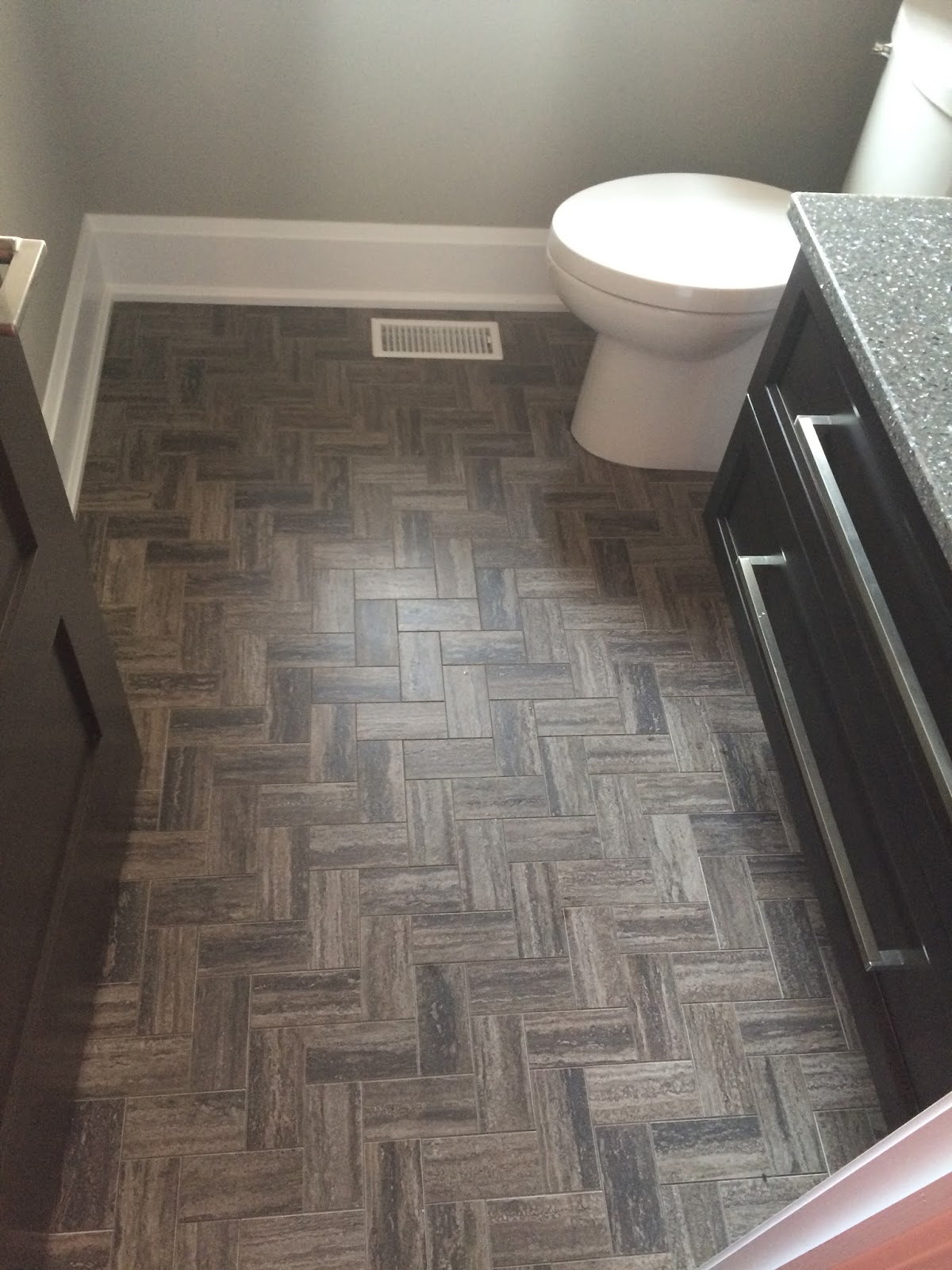 | A beautiful herringbone tiled floor. |